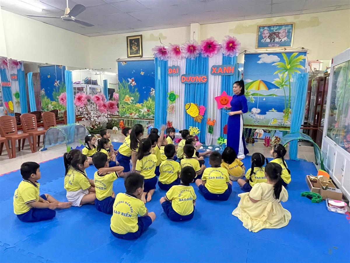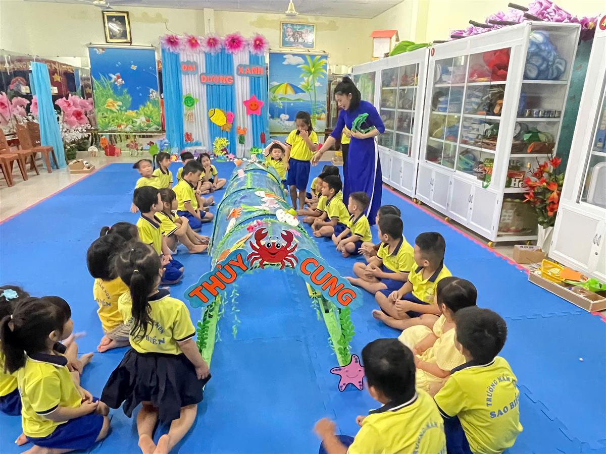 Thực hiện Kế hoạch kiểm tra nội bộ NH 2022-2023, nhà trường tiến hành dự giờ kiểm tra việc thực hiện nhiệm vụ đối với cô Nguyễn Thị Hoàng Oanh - GV lớp 5-6 tuổi A. với 2 hoạt động: