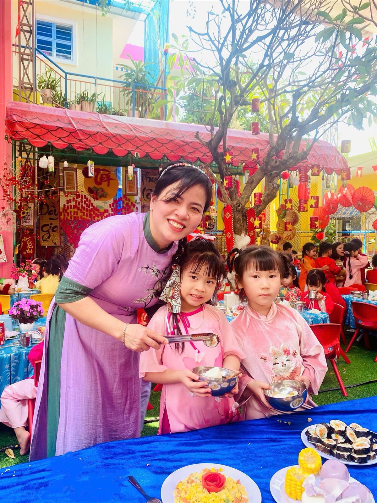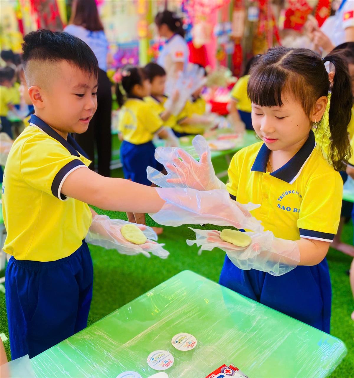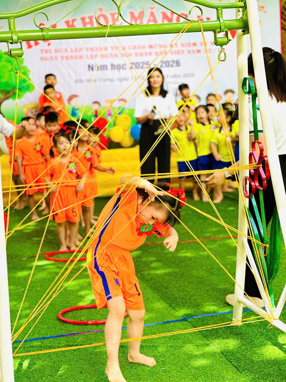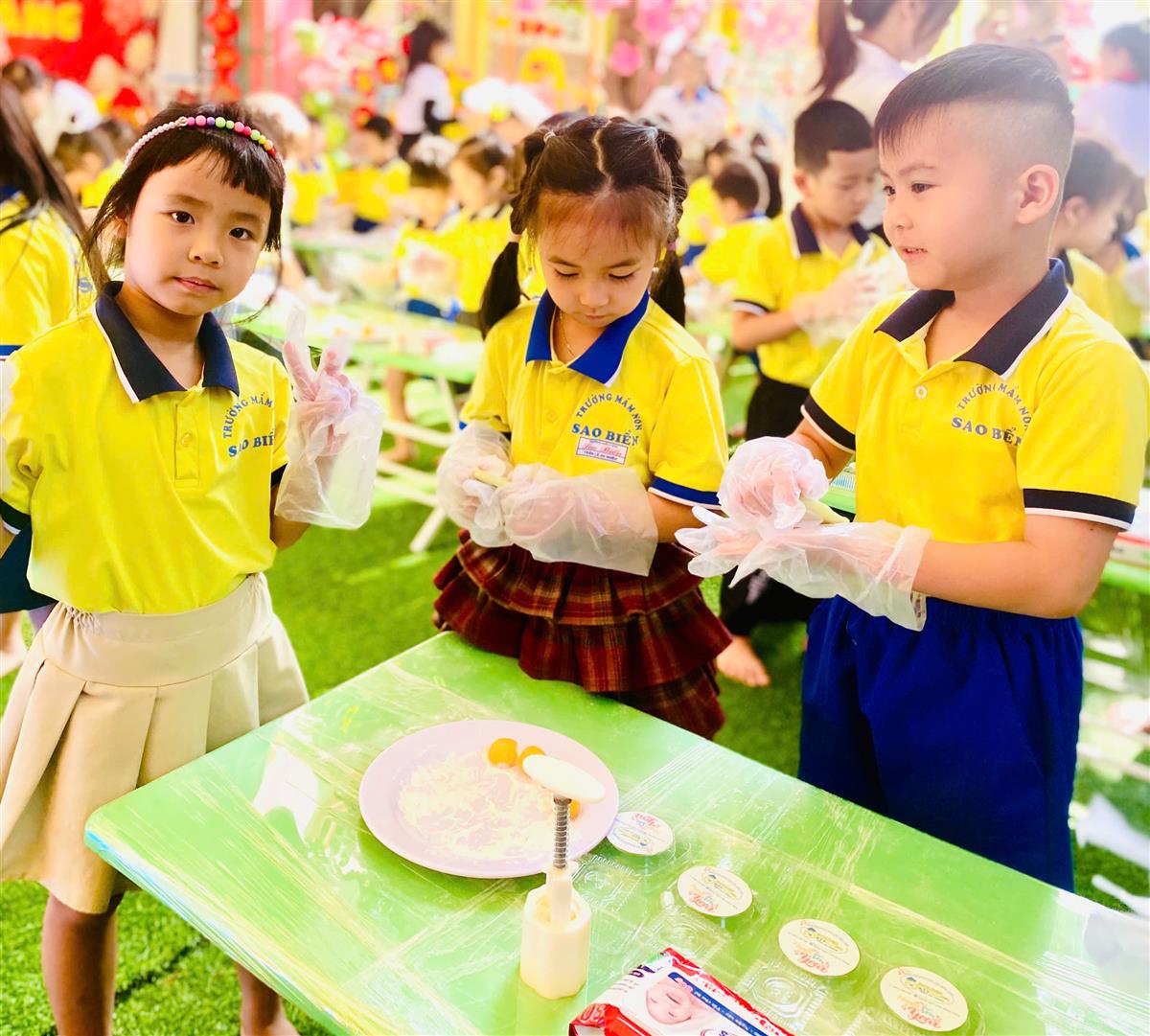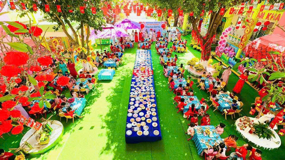 Tại phiên chợ Tết, các bé được hóa thân thành những “người bán – người mua” nhí, làm quen với các gian hàng Tết truyền thống, rèn kỹ năng giao tiếp và mạnh dạn, tự tin khi tham gia hoạt động tập thể. Bên cạnh đó, các trò chơi dân gian vui nhộn đã mang đến không khí sôi nổi, giúp trẻ thêm hào hứng, gắn kết bạn bè.